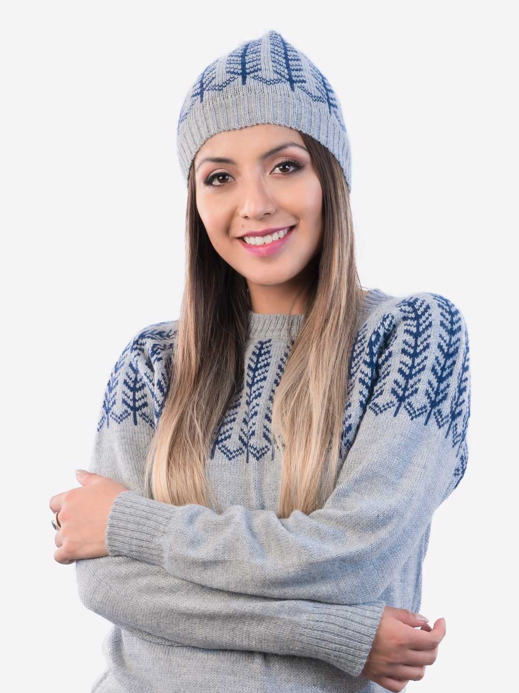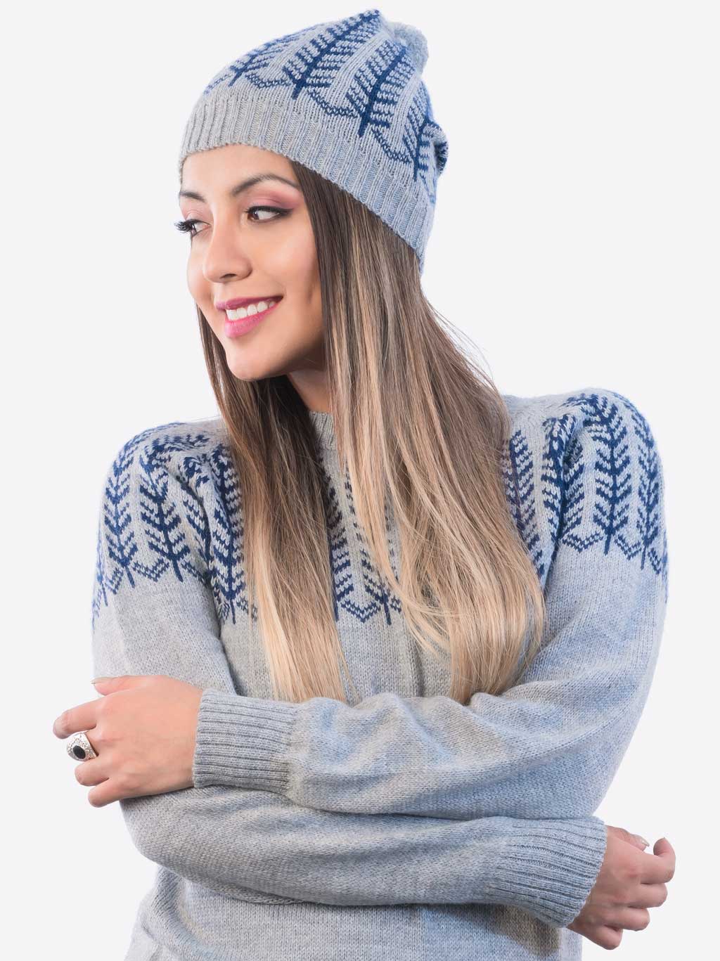 This beanie alpaca hat designed by Inti Alpaca in Gray with Blue details, knitted by Peruvian artisans in soft alpaca wool. A pom pom at the top of the hat is the perfect decoration for this beanie hat. The perfect accessory for the winter season!.