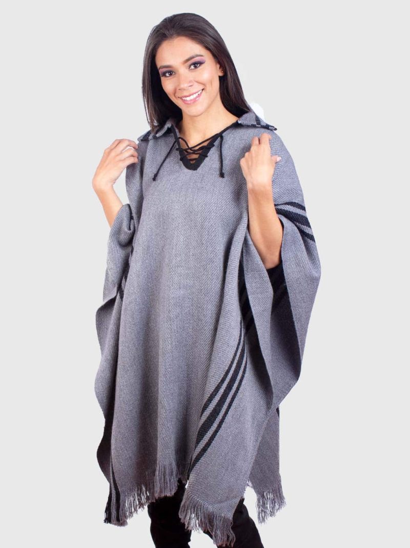 This gray “Sapay” poncho for women is handmade by Peruvians artisans with selected alpaca wool. It has a collar V-neck, giving a casual and chic look, perfect for family and friends reunions.