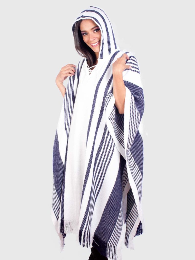 This hooded women´s poncho is what you need for keeping your temperature warm and being comfortable, in those cold days of the winter season! This one named “Nina” it combines white with an amazing blue lines pattern.