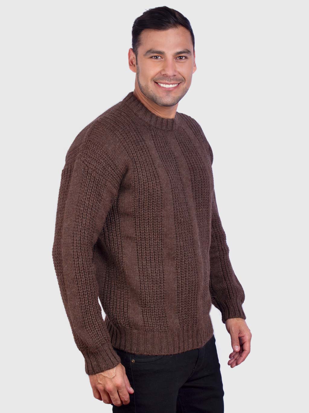 Men’s Hand Knit Long Sleeve Crewneck Brown Alpaca Sweater