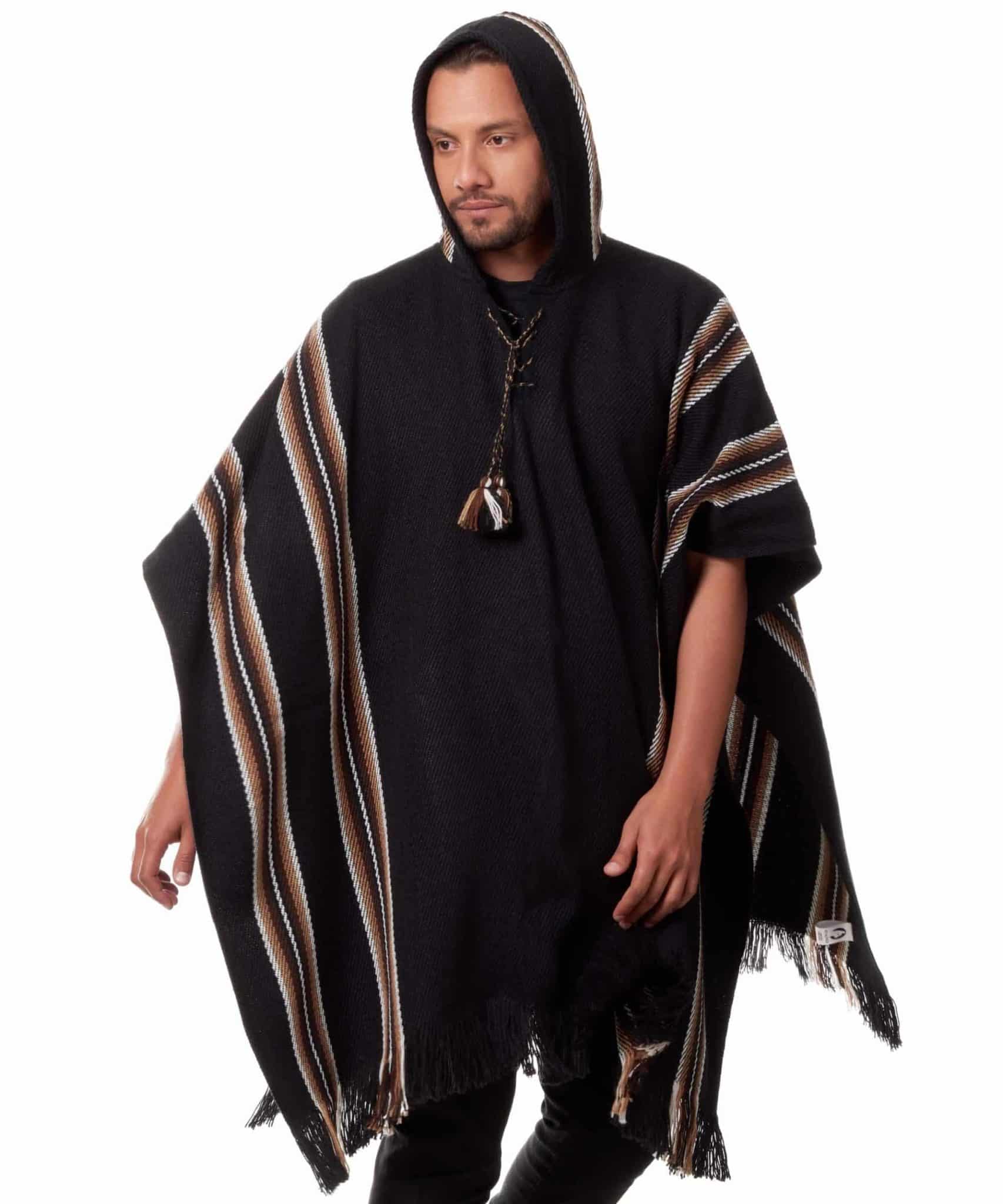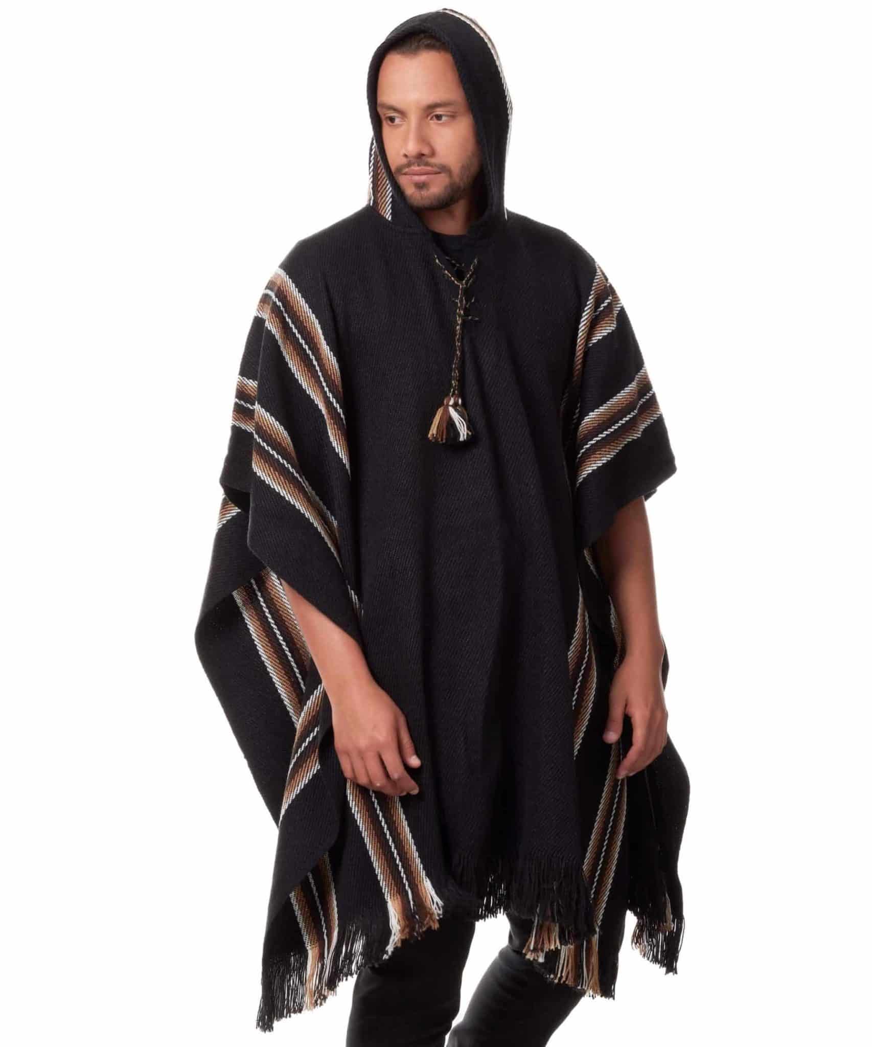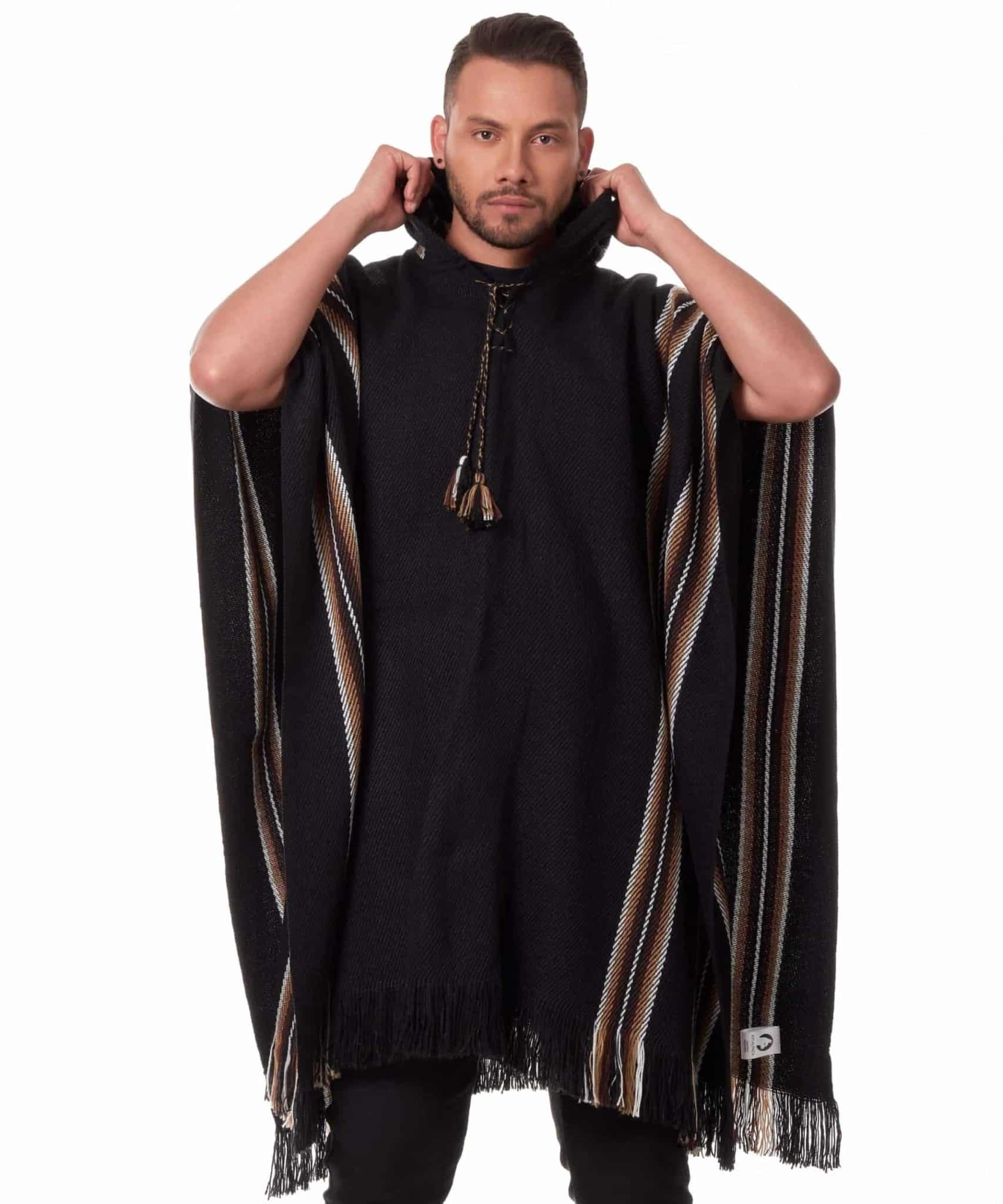 This black alpaca hooded poncho cloak cape for men is an artisan piece made on looms by crafters from Peru. It has an amazing black color, giving an elegant and classic look. The striped Poncho from INTI ALPACA is made of Alpaca fiber. It presents a modern and contemporary design, combining colors, shapes, and trendy design, especially for those with an unexplainable – but powerful – desire to travel and explore the world.