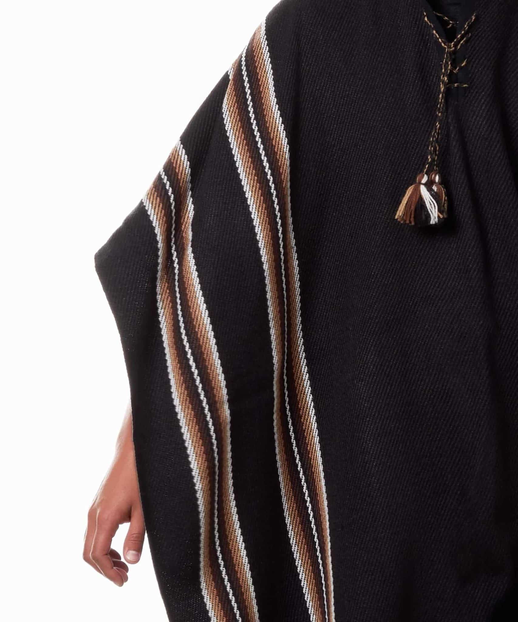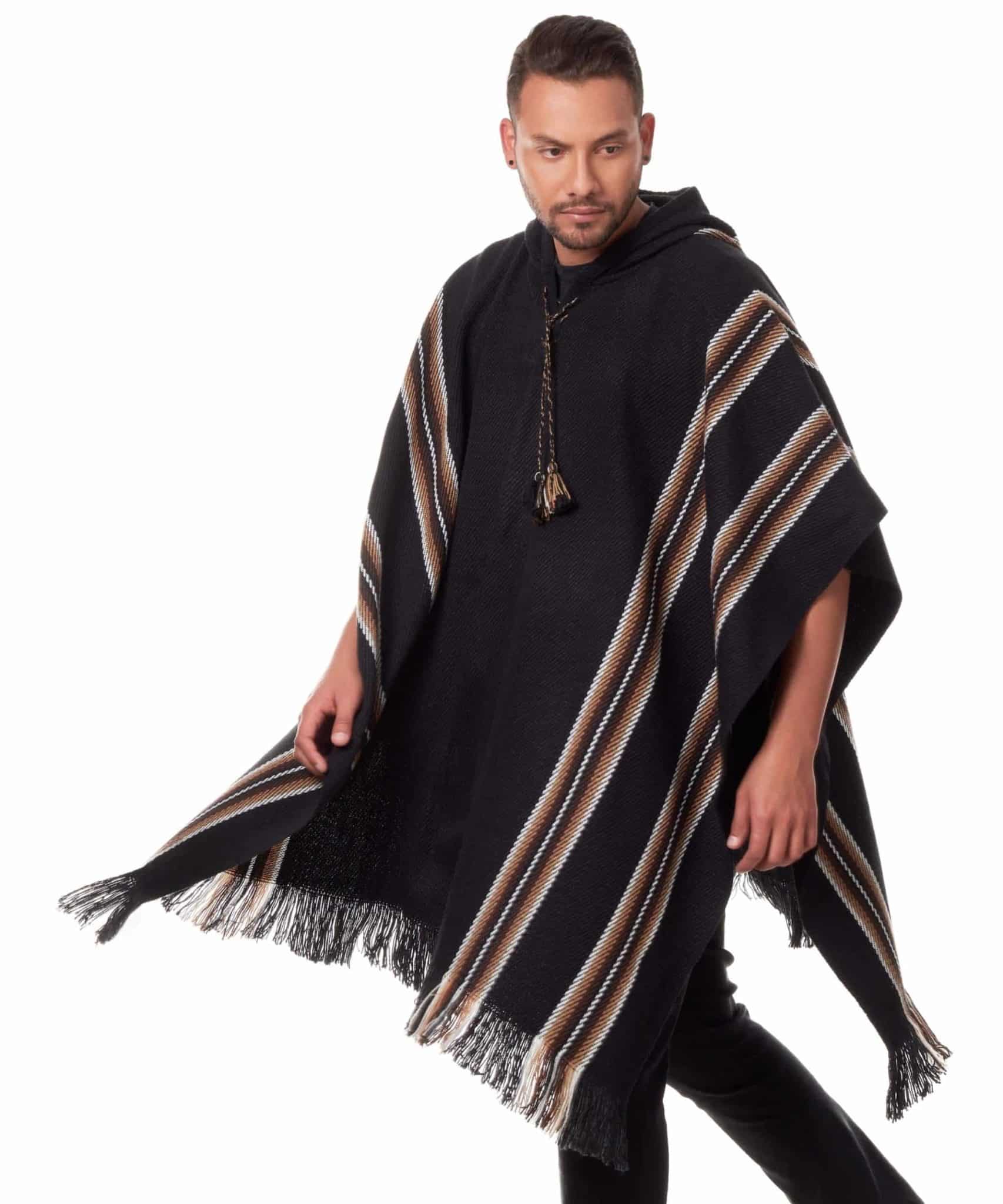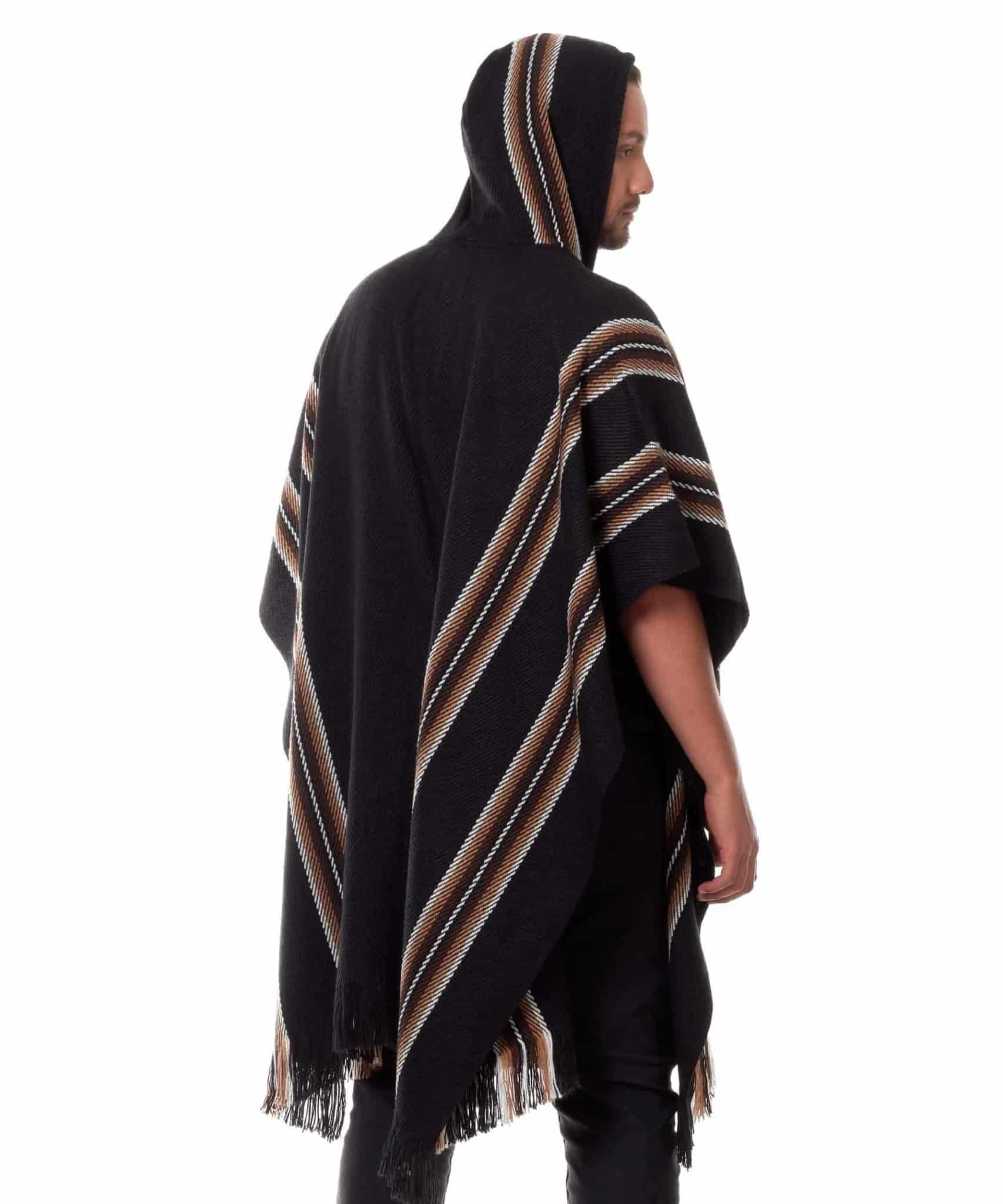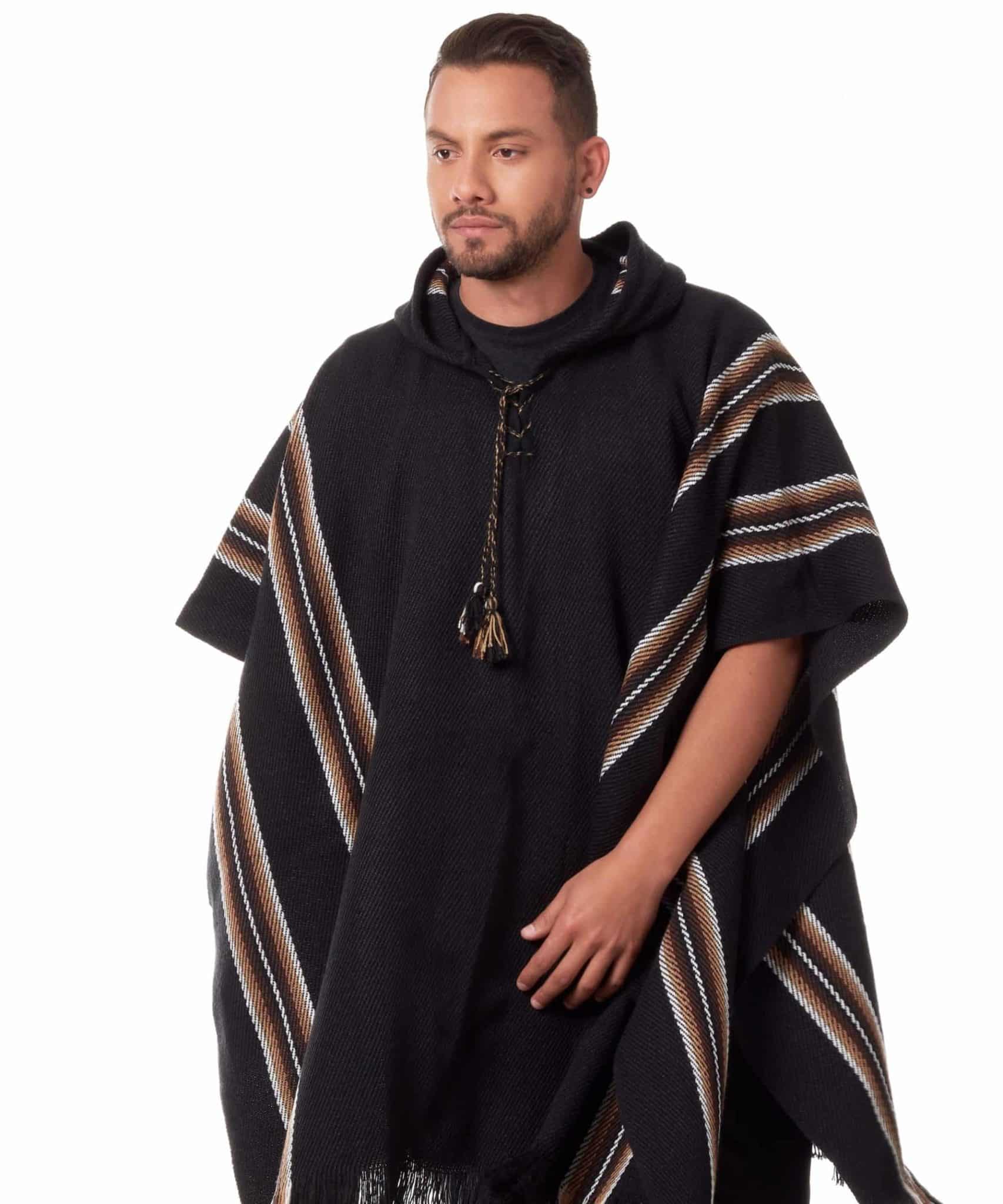 This black alpaca hooded poncho cloak cape for men is an artisan piece made on looms by crafters from Peru. It has an amazing black color, giving an elegant and classic look. The striped Poncho from INTI ALPACA is made of Alpaca fiber. It presents a modern and contemporary design, combining colors, shapes, and trendy design, especially for those with an unexplainable – but powerful – desire to travel and explore the world.
