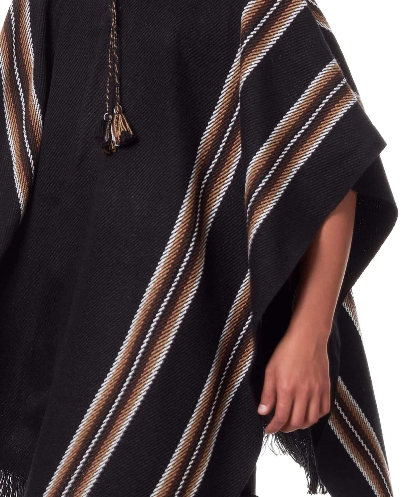 INTI ALPACA Men’s Hooded Cloak Cape Poncho Knitted in Peru with Black Alpaca Wool for Winter Season