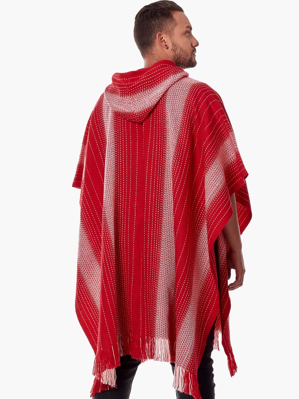 INTI ALPACA Men’s Hooded Poncho – Alpaca Cloak Cape for winter Season – Western Cowboy Poncho knitted in Red Wool