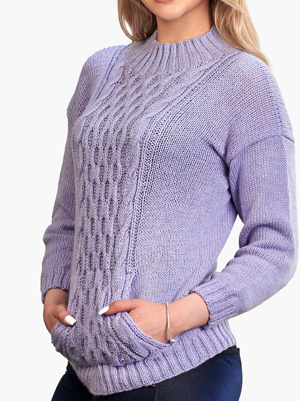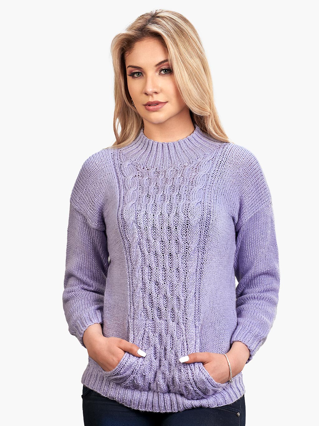 This amazing Norwegian purple aran handmade pullover for women with Kangaroo Pocket is an artisan piece . Its cloth is from alpaca wool, making it comfortable, soft and warm for those cold days. Also is light-weighted, being this way the perfect garment to wear year-round in any occasion.
