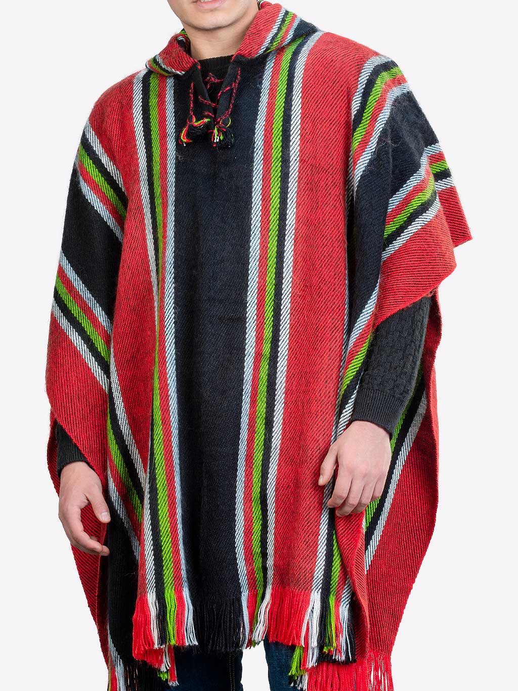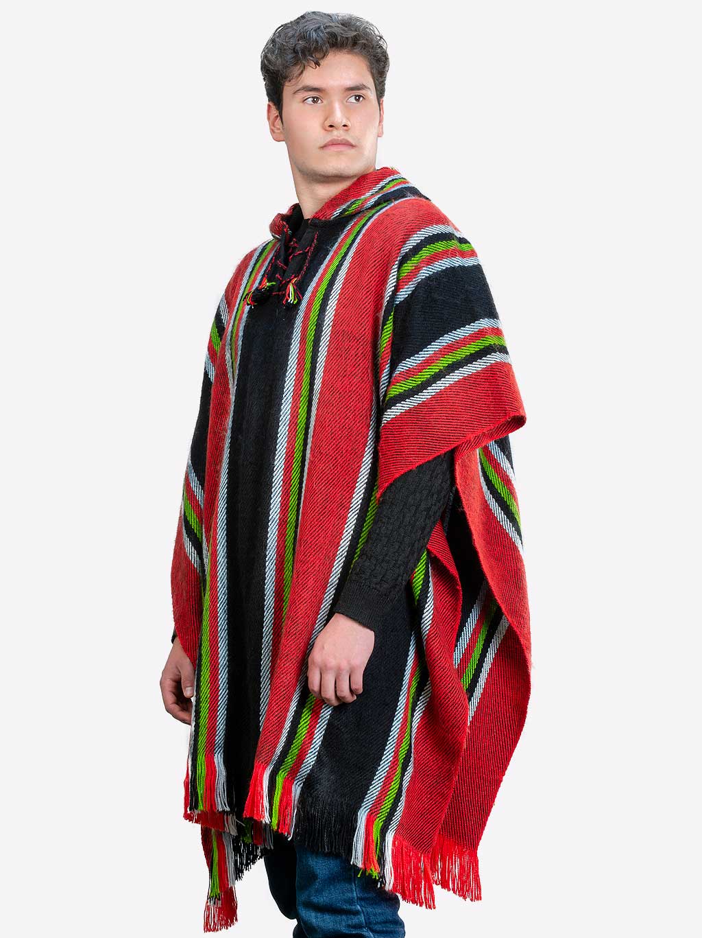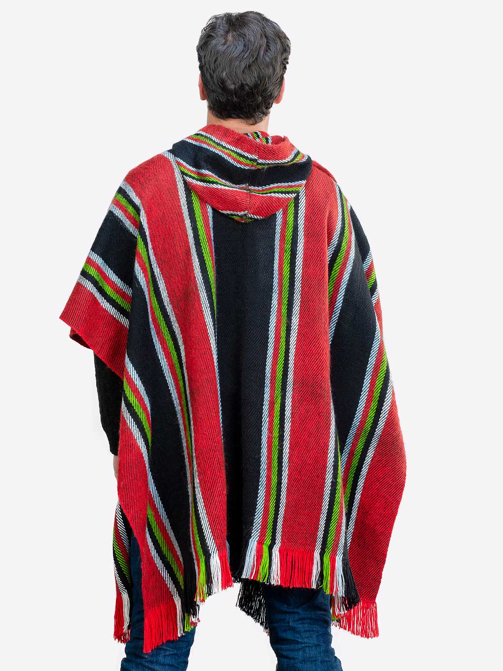 This hooded poncho for men is an artisan piece made on looms by crafters from Peru. It is named as “Helsinki” and has an amazing Black color combined with a vertical red and green lines pattern, giving an elegant and classic look. Its alpaca wool material can maintain you warm and cozy in those cold days of the year! Our alpaca ponchos are specially designed not only to look impressive on you, but also keep you warm and comfortable. Women and men can enjoy this garment, which is designed to stand out among regular clothes. They are perfect for any casual occasion. One size fits most Length: 100 cm (39.37″) Width: 120 cm (47.24″)