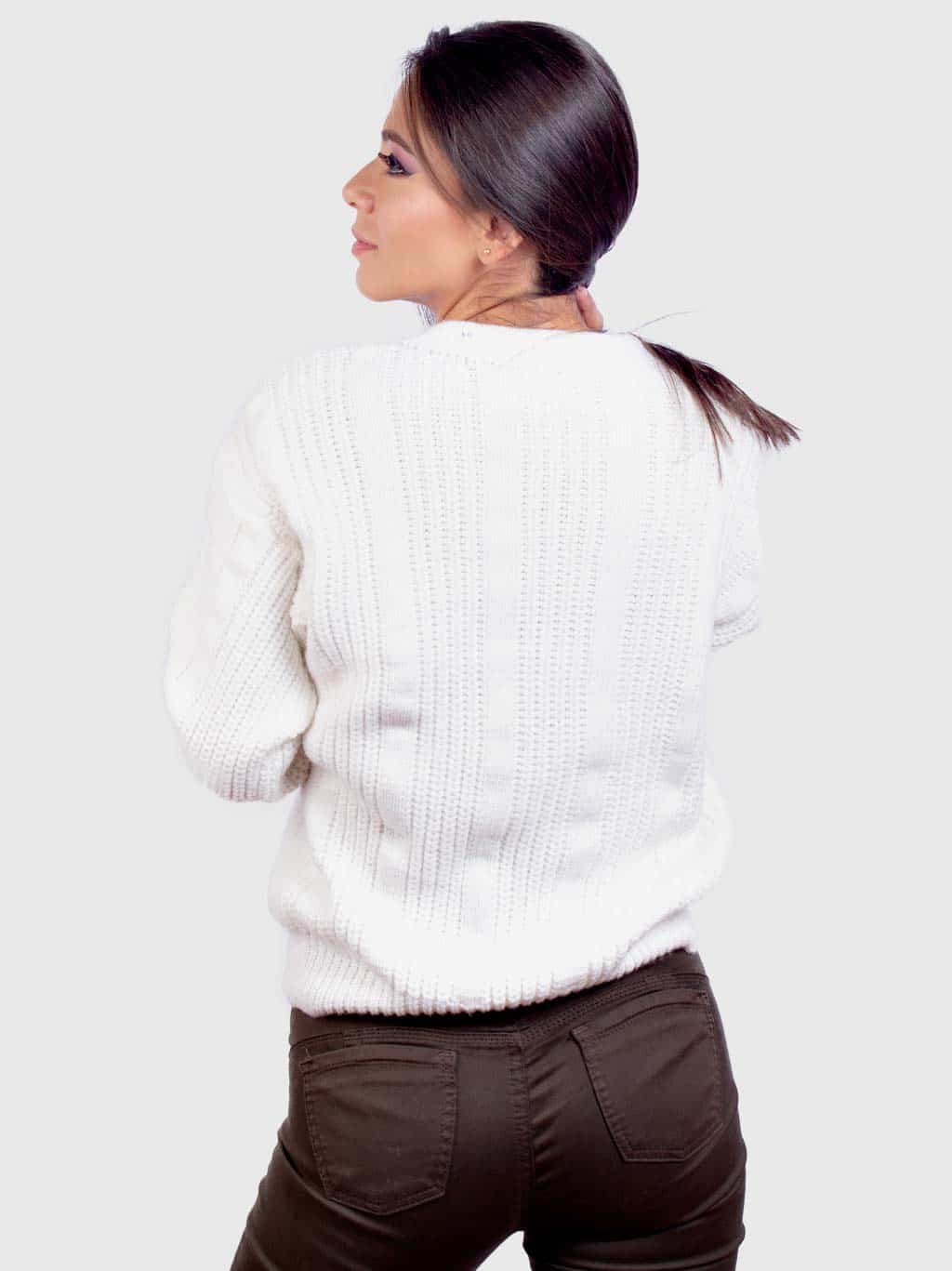 This white pullover for women has a classic V-neck and is an artisan piece from Peru, made with warm and cozy alpaca wool.