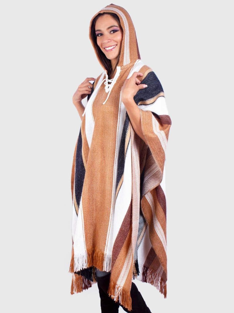 This hooded women´s poncho “Yuria” has a casual and awesome look when you use it! It is hand woven by Peruvians artisans with alpaca wool, making it soft, comfortable and warm for those chilly days of the fall and winter season.