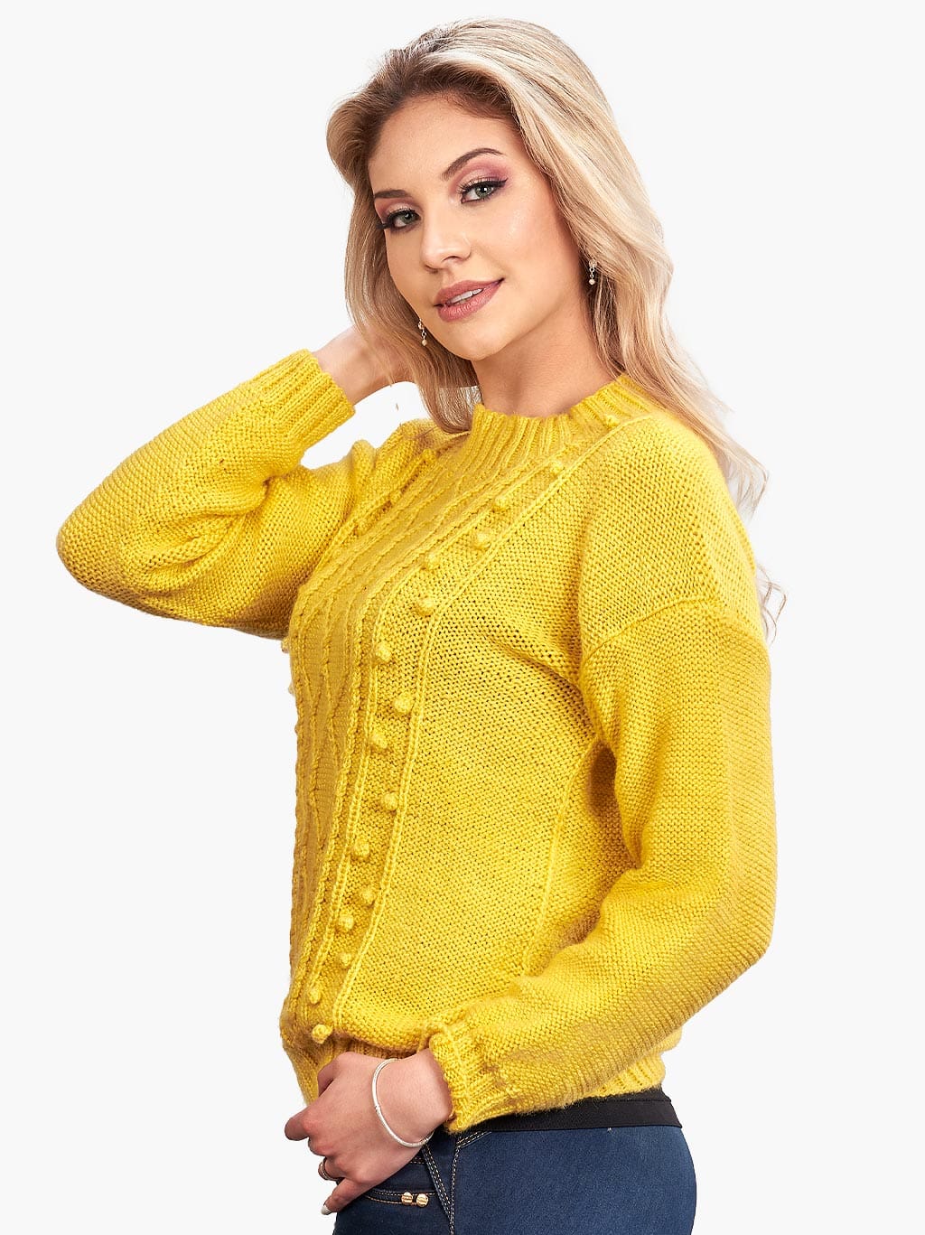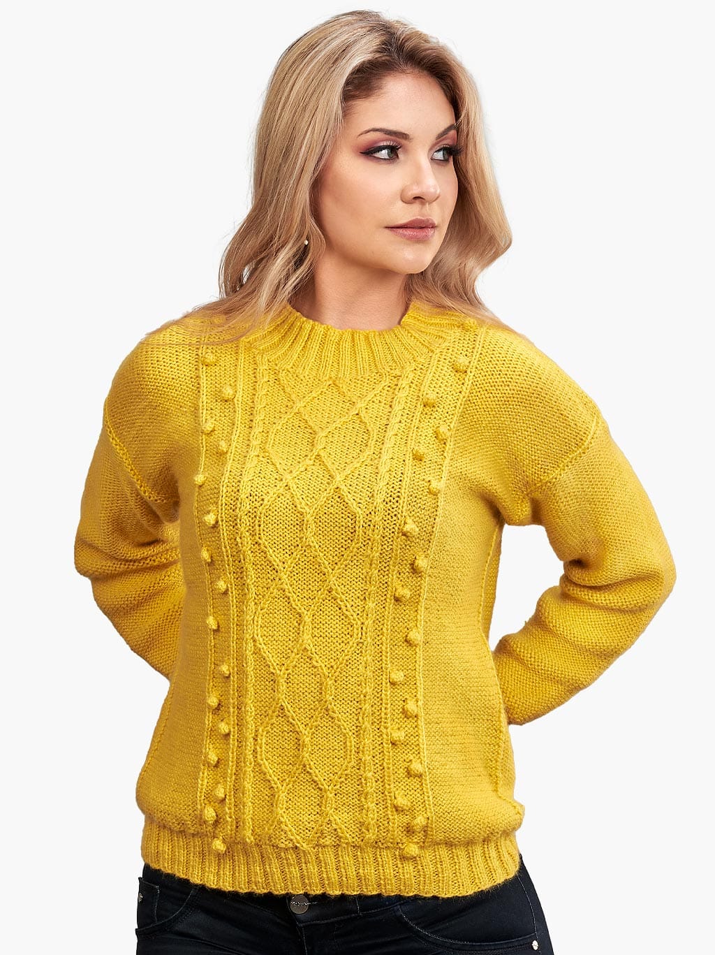 This amazing Norwegian yellow handmade pullover for women is an artisan piece . Its cloth is from alpaca wool, making it comfortable, soft and warm for those cold days. Also is light-weighted, being this way the perfect garment to wear year-round in any occasion.